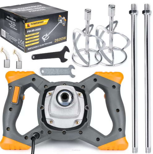 Miscelatore di vernici e malte altamente efficiente, insostituibile nella miscelazione di liquidi e materiali da costruzione polverosi. Questo affidabile agitatore ha un controllo della velocità in 6 fasi e si distingue per il semplice funzionamento. Perfettamente adatto per la miscelazione di vernici per colla, gesso, malte da intonaco, malte di calce e cemento, resine epossidiche, prodotti chimici non infiammabili, ecc